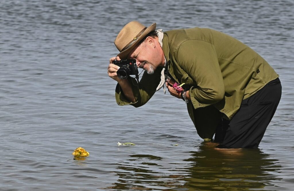 Never without a camera on his shoulder ( except when he’s blowing on the harp maybe ), Danny Clinch, co-Creator of the annual Sea-Hear-Now Festival snapping photos during Tink’s Paddle Out.