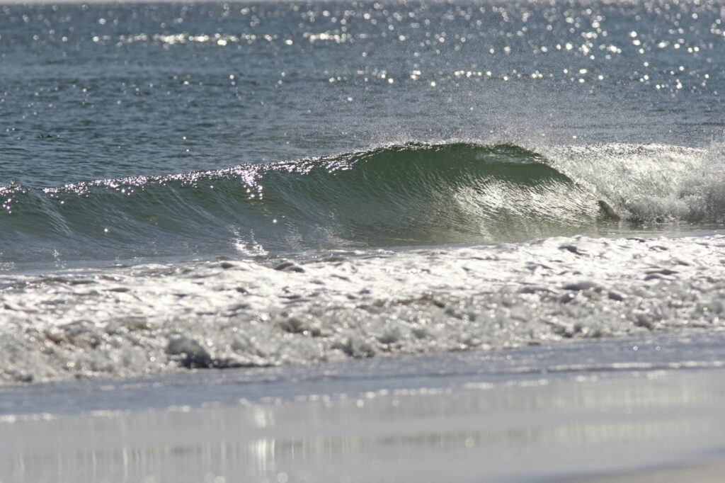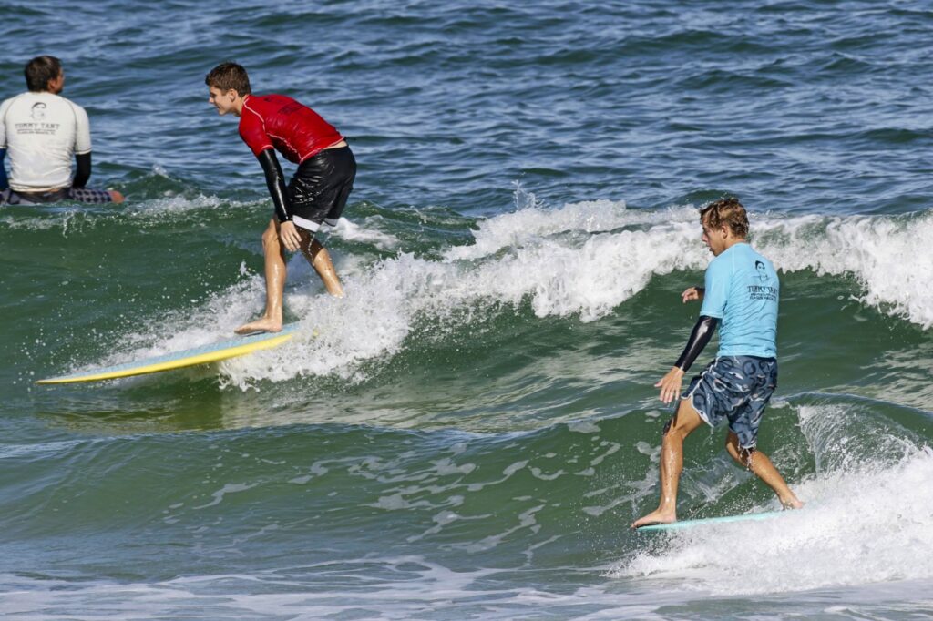 The event this year was moved a bit south of its usual location, but with the waves being only two to three feet, the sandbar was actually breaking in front of, and just a bit south of the judges scaffolding.