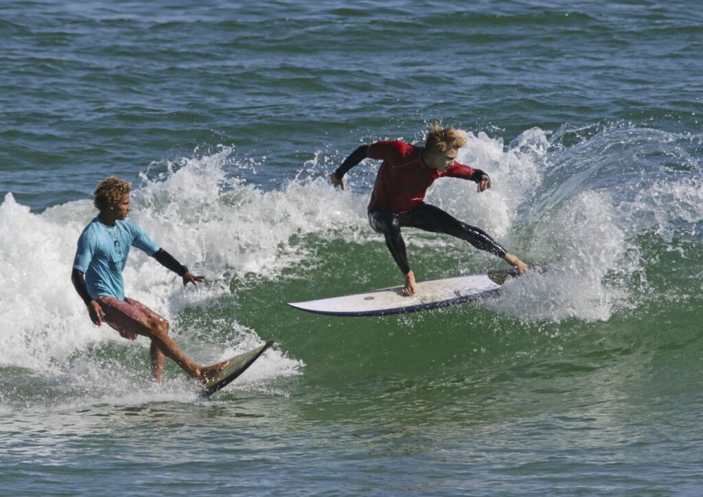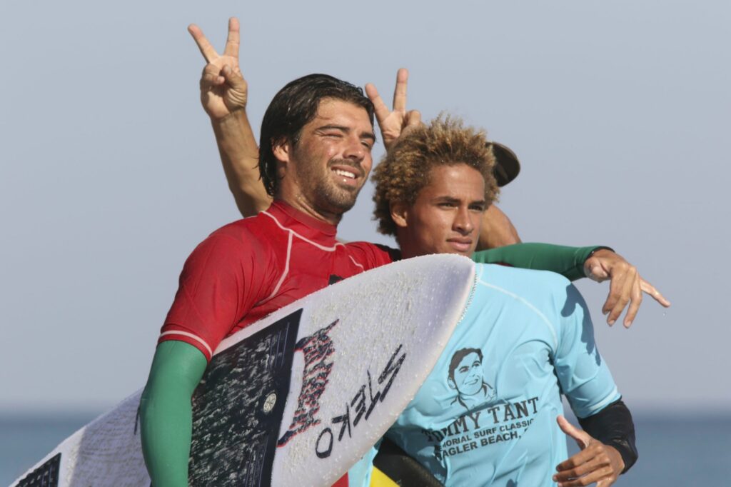 DC Lewis and Mako Musilunas get ready for their Jr. Pro heat Sunday morning. PHOTO : @tomduganphotos