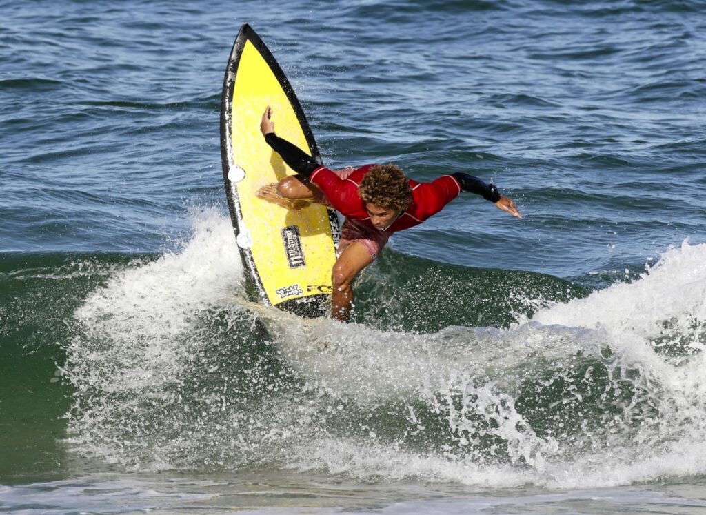 Another local, Jesse Heilman, tail out and fins free in the Men’s Pro on Saturday. PHOTO : @tomduganphotos