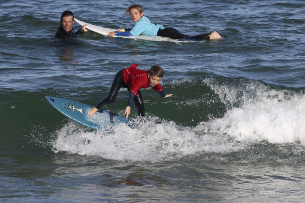 The Tadpole heats were some of the most fun heats to watch of the contest. Dads pushed their kids into the waves and the groms did all they could to rip it up for the win. Kody Joiner and his dad watch Julian Davis rip his way to a first place finish. PHOTO : @tomduganphotos