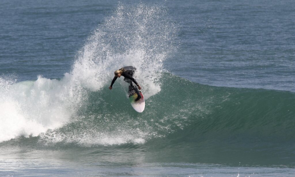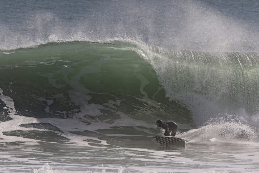 This day had very strong offshore winds with a few really nice sets. Chauncey Robinson turns into a clean overhead wave. PHOTO : @tomduganphotos