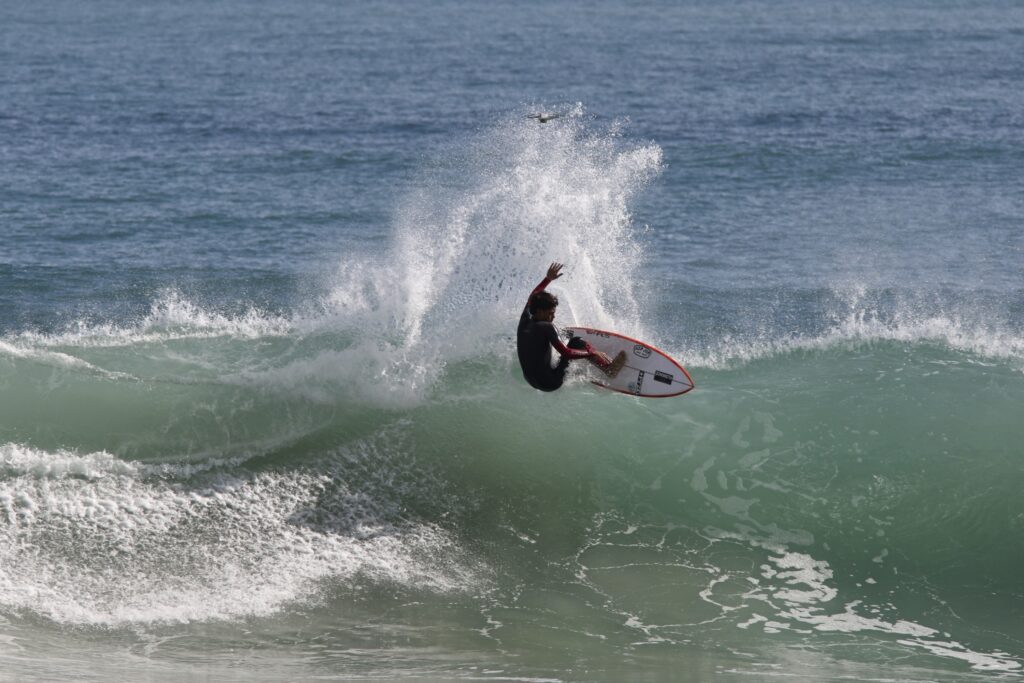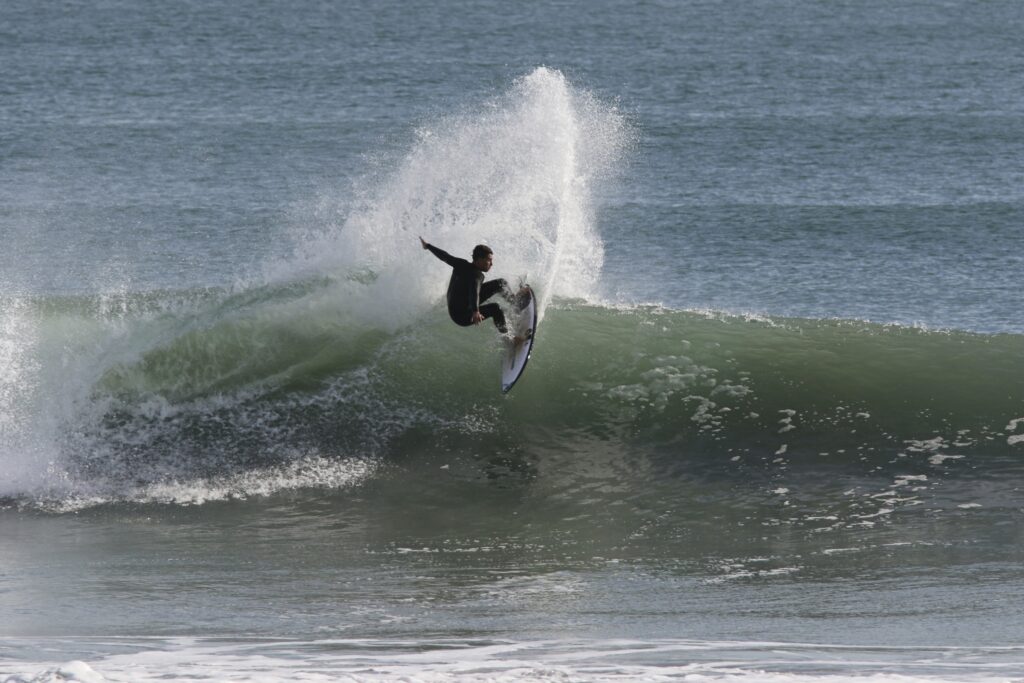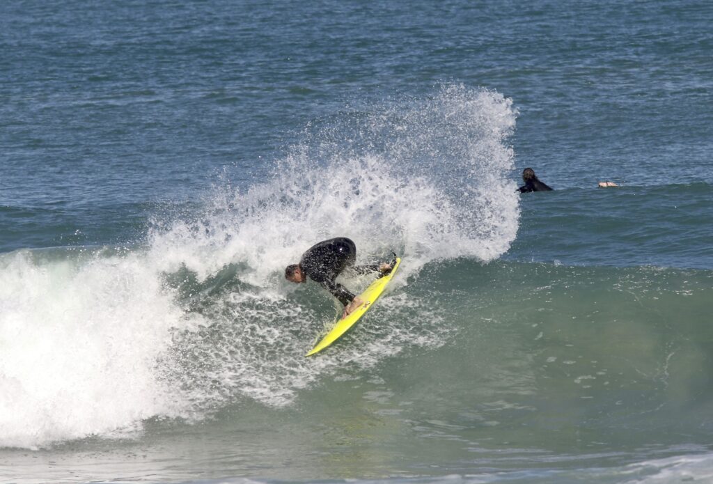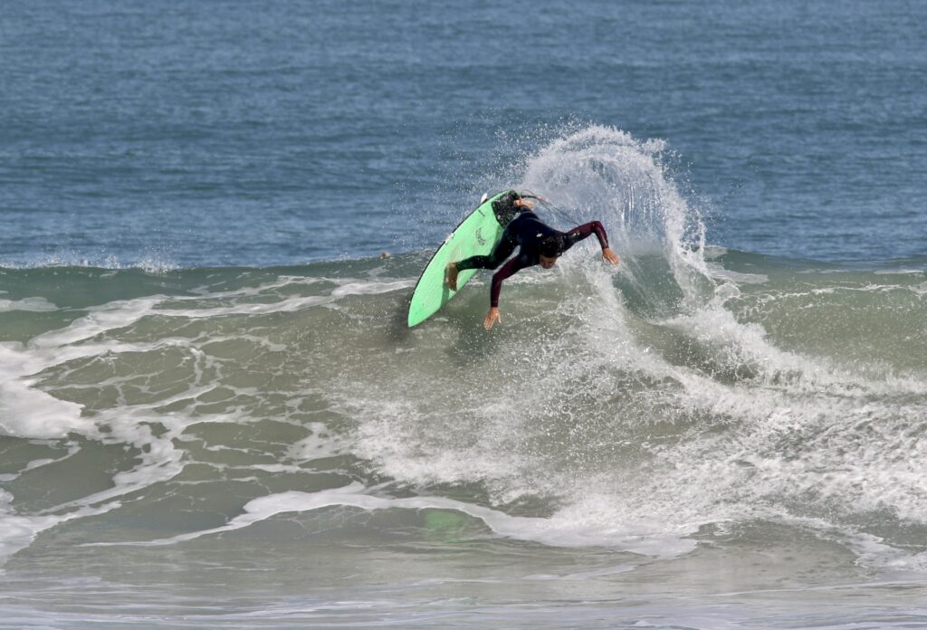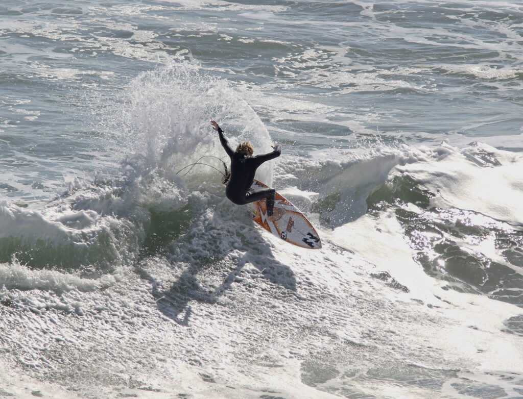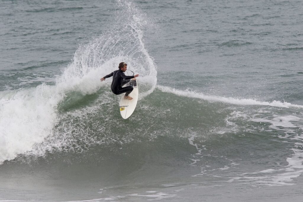 Another fellow surfer who drove the three hours to surf a bit warmer water on a long period swell day. Jay Weyer smacks one in the shore break. PHOTO : @tomduganphotos